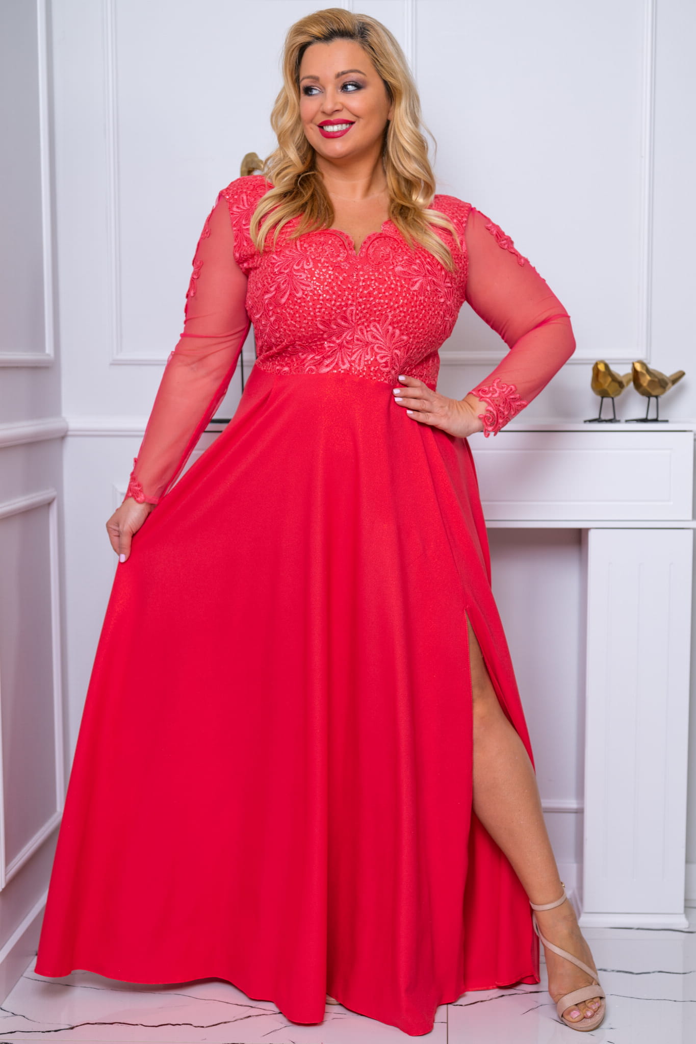 CARMEN LONG brocate coral 52